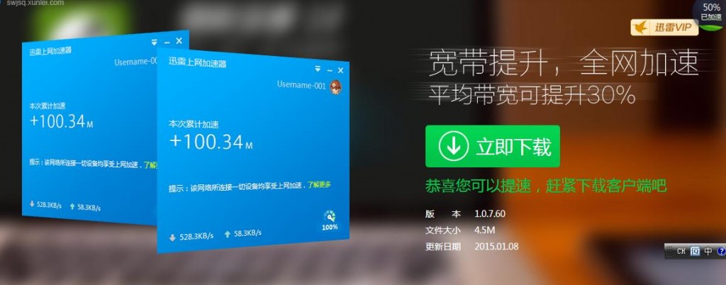 迅雷上网加速器是迅雷与电信合作推出的一项上网加速服务,技术原理为大幅提高用户现有物理宽带带宽,提升上网速度,让你在看视频、游戏、购物、下载文件等场景时享受大带宽畅快加速。